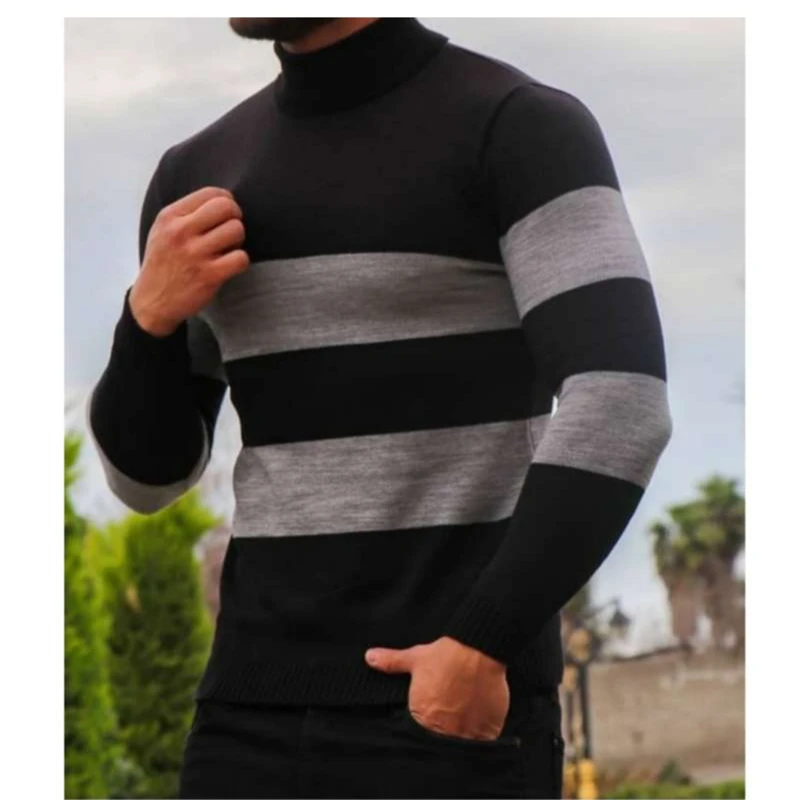 پلیور یقه اسکی مردانه مدل راه راه رنگ مشکی
